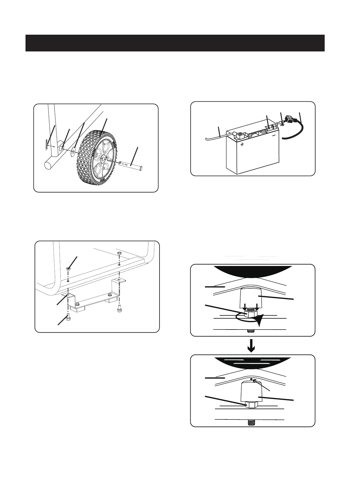 3 - Deslice el pasador del eje (A) a través de la rueda