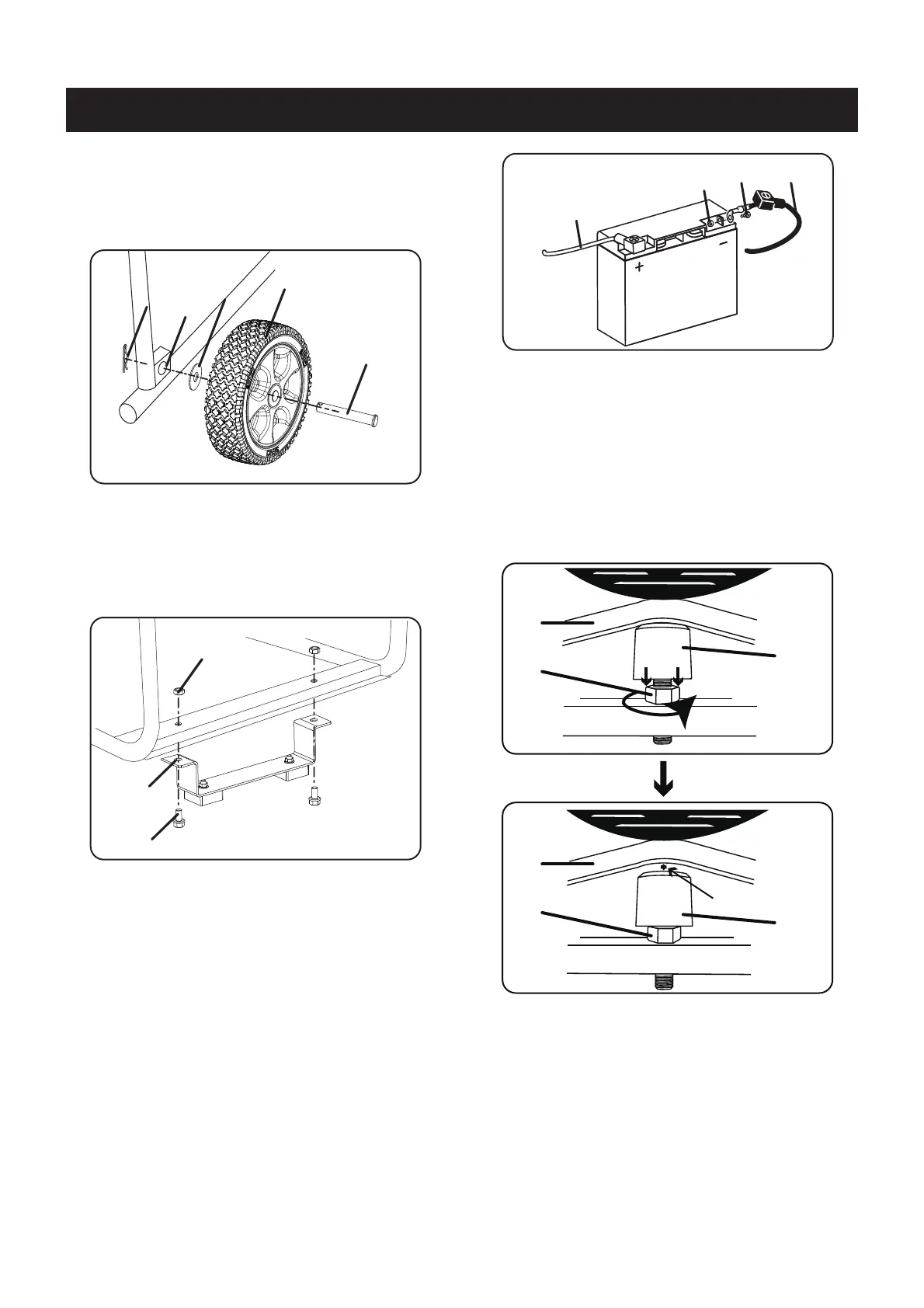 roue (B), la rondelle plate (C) et le trou de l'essieu du