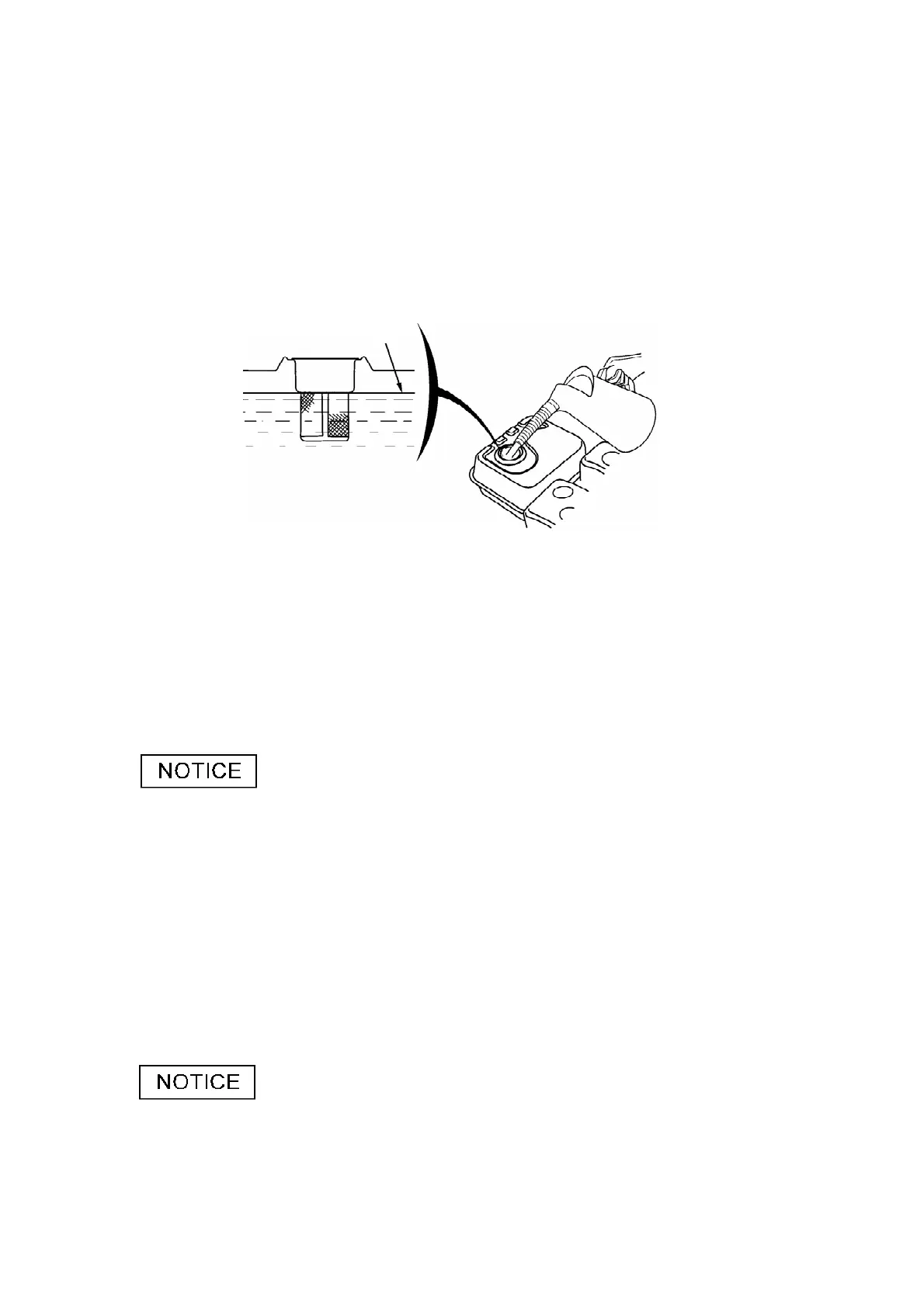 tank above the fuel strainer shoulder. After refueling, tighten the fuel tank cap