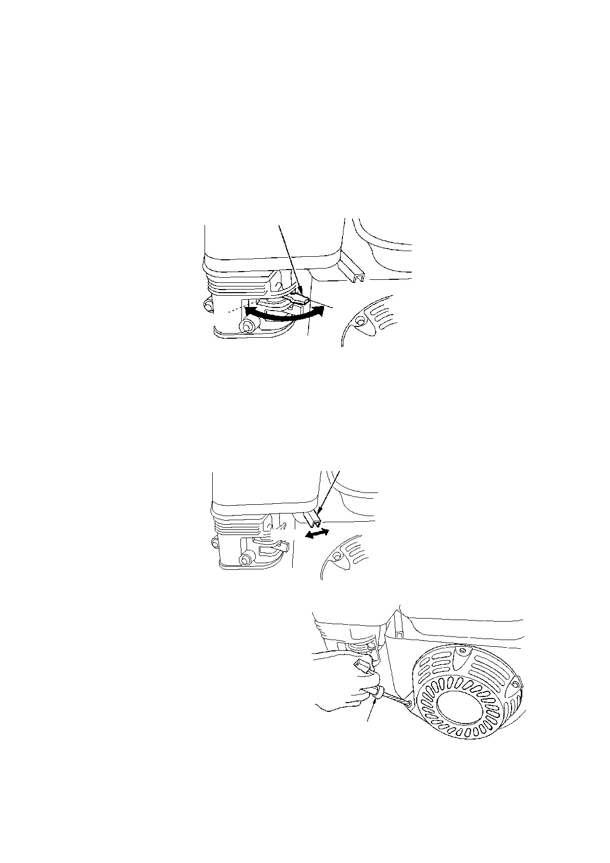 Moving the throttle lever in the directions shown makes the engine run faster or