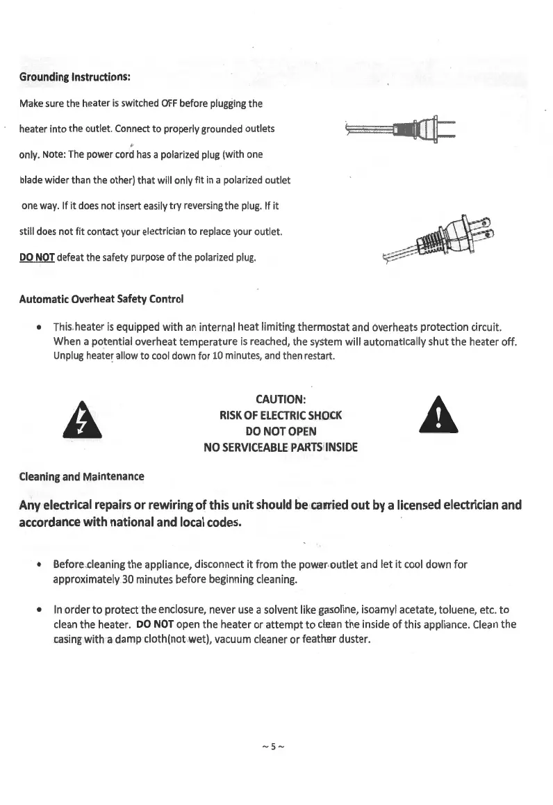 heater into the outlet. Connect to properly grounded outlets
