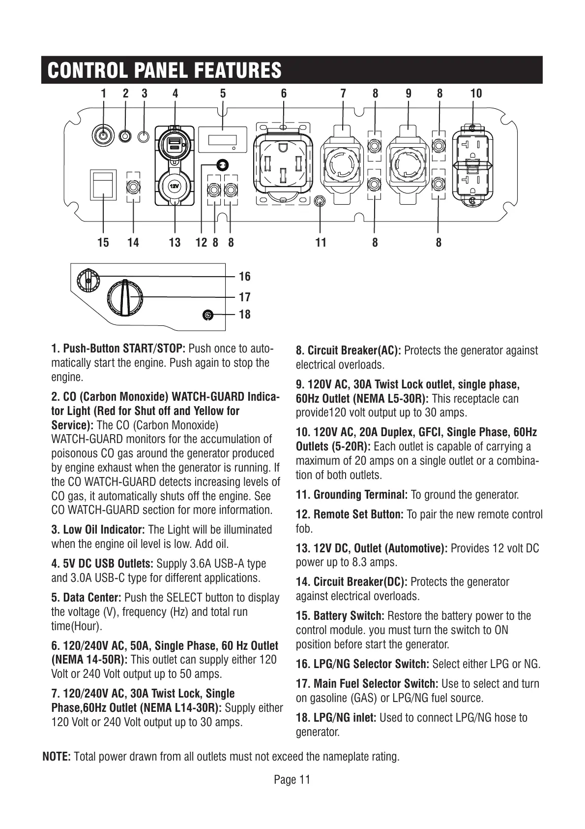 NOTE: Total power drawn from all outlets must not exceed the nameplate rating.