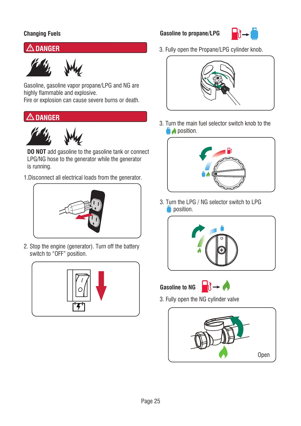 Gasoline, gasoline vapor propane/LPG and NG are