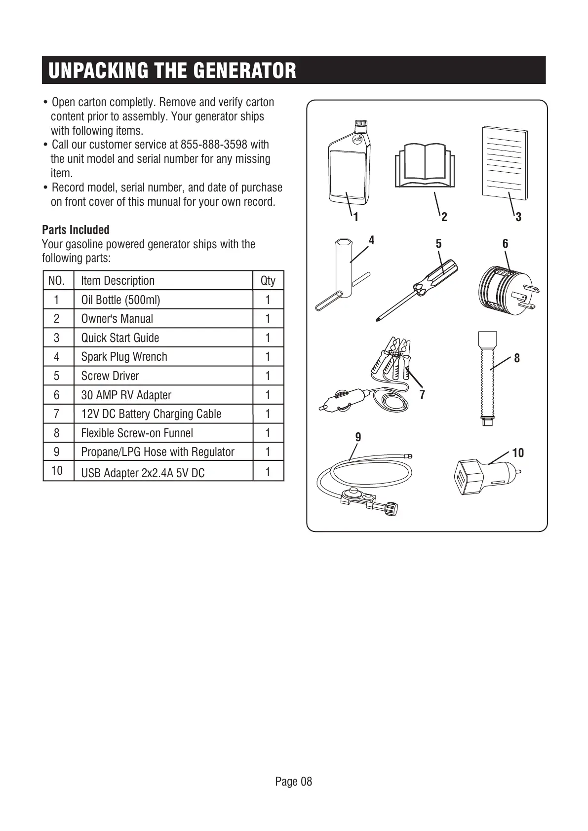 content prior to assembly. Your generator ships