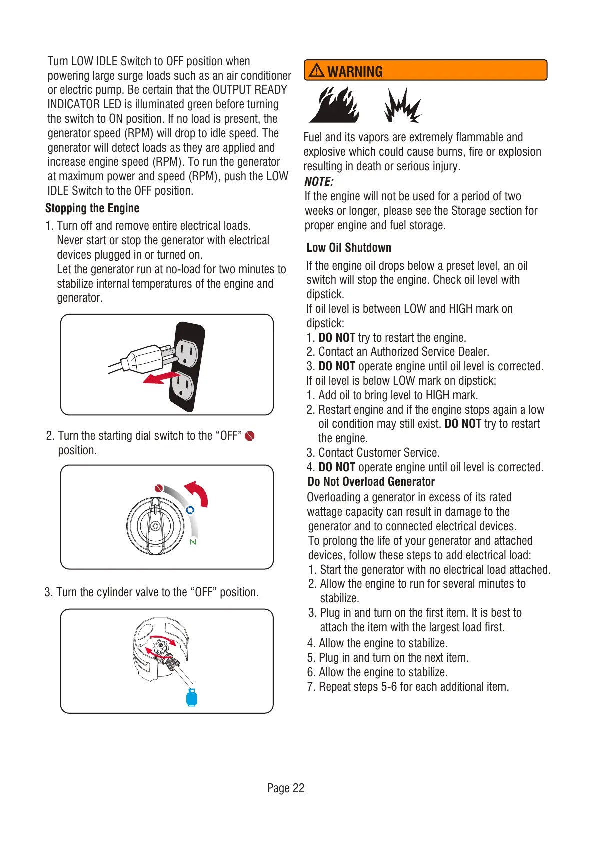 Turn LOW IDLE Switch to OFF position when