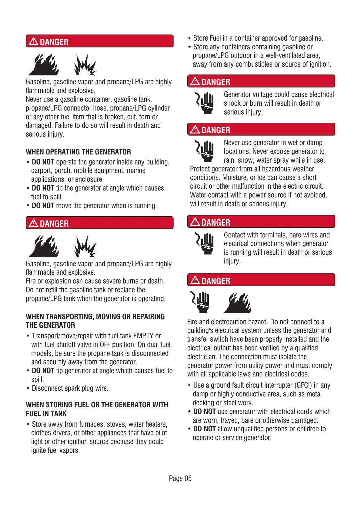 WHEN STORING FUEL OR THE GENERATOR WITH