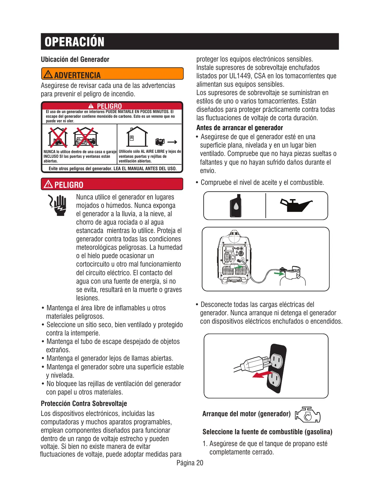 Evite otros peligros del generador. LEA EL MANUAL ANTES DEL USO.