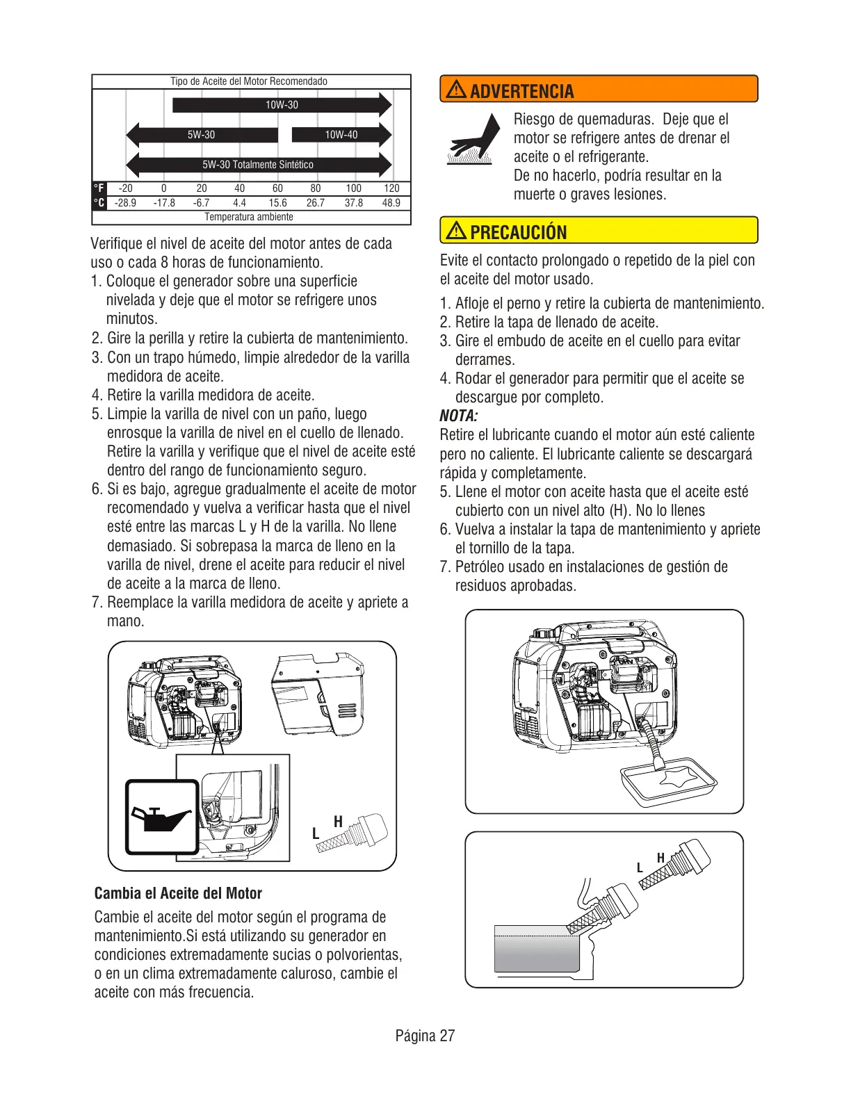Retire el lubricante cuando el motor aún esté caliente