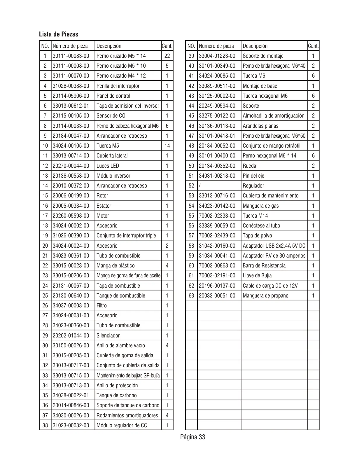 Lista de Piezas