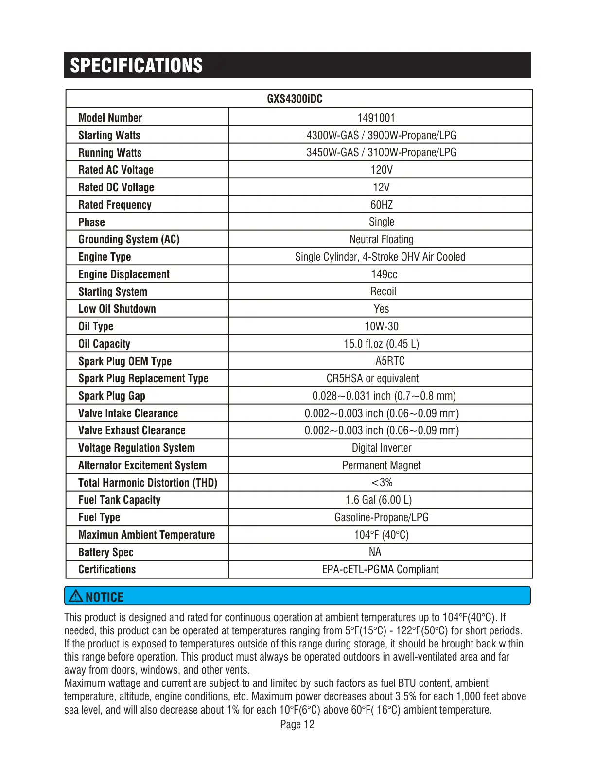 Maximum wattage and current are subject to and limited by such factors as fuel BTU content, ambient