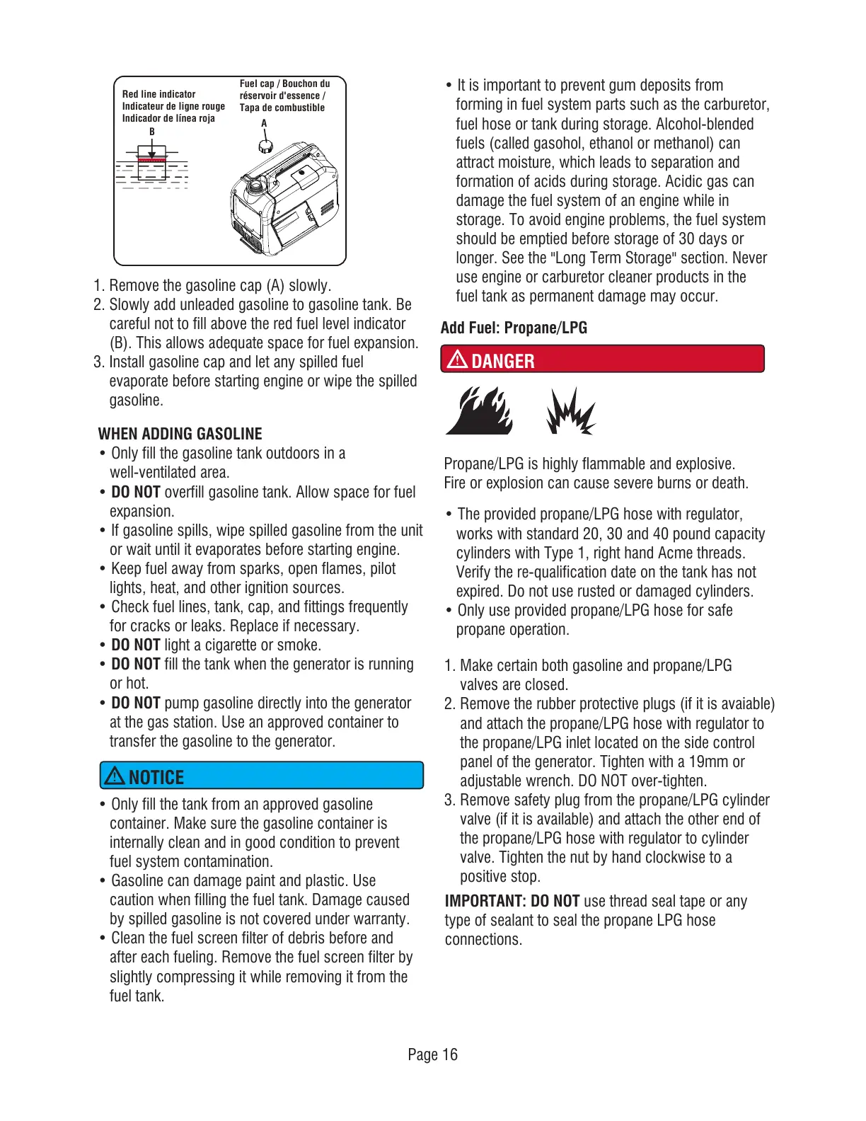 • DO NOT overfill gasoline tank. Allow space for fuel