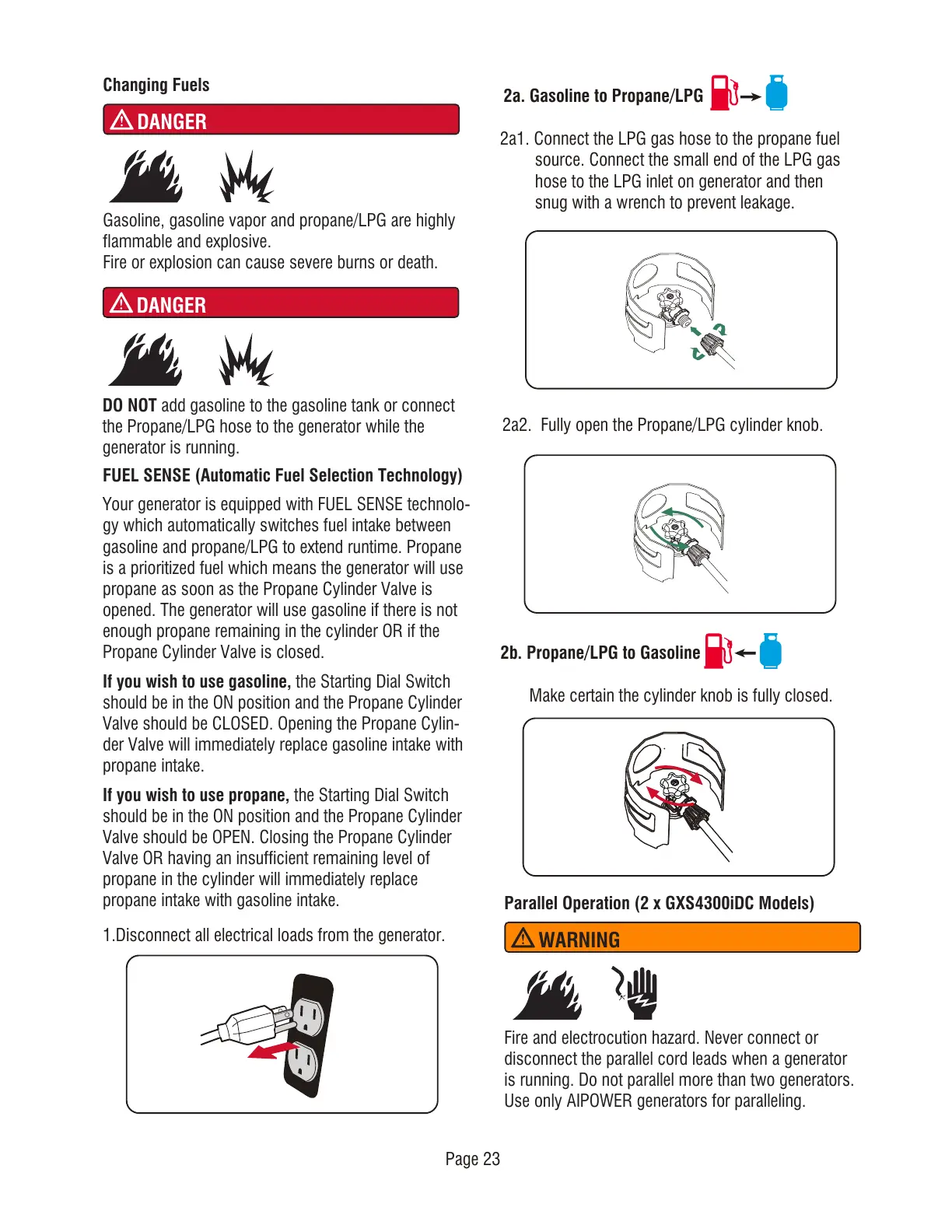 gasoline and propane/LPG to extend runtime. Propane