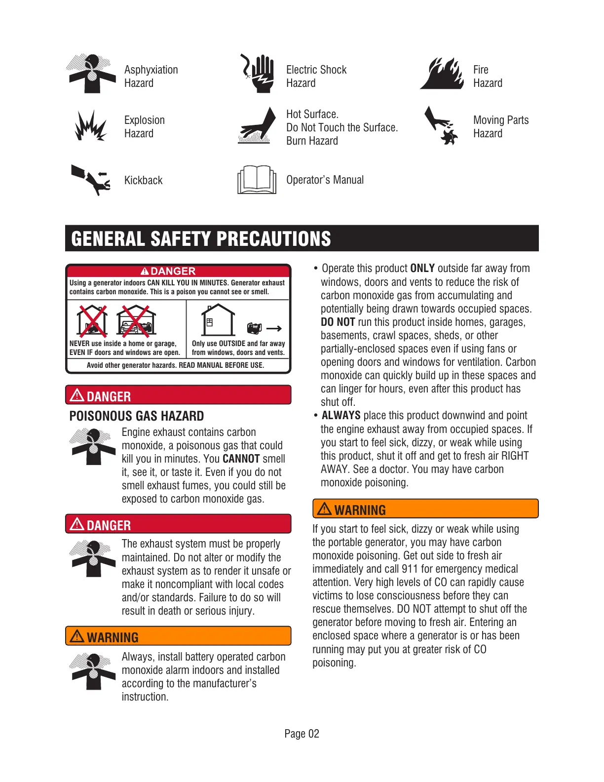 Avoid other generator hazards. READ MANUAL BEFORE USE.