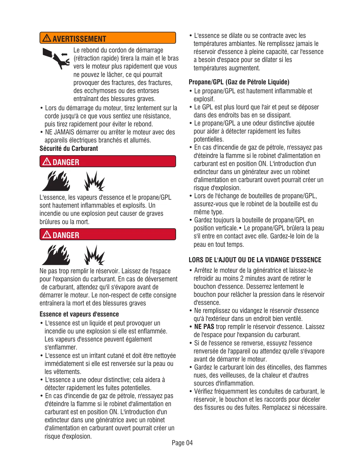 • NE PAS trop remplir le réservoir d'essence. Laissez