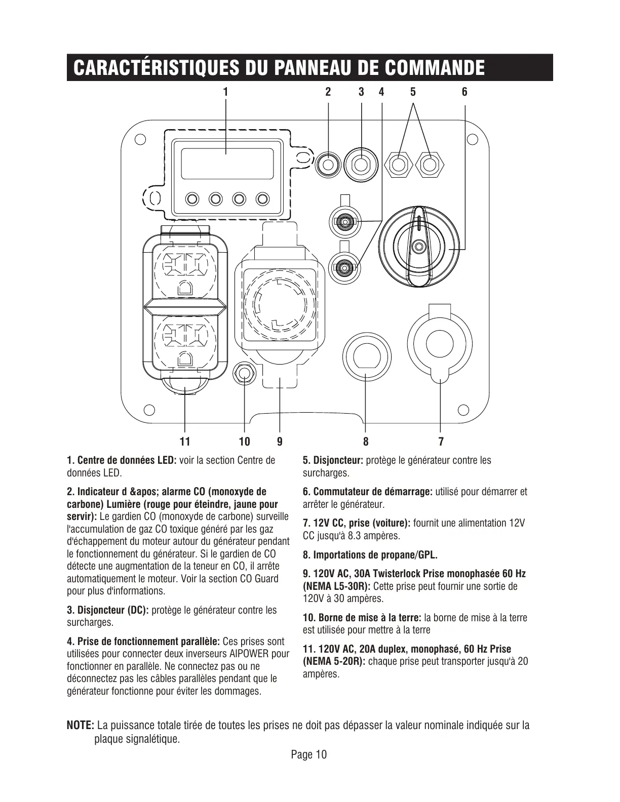 5. Disjoncteur: protège le générateur contre les