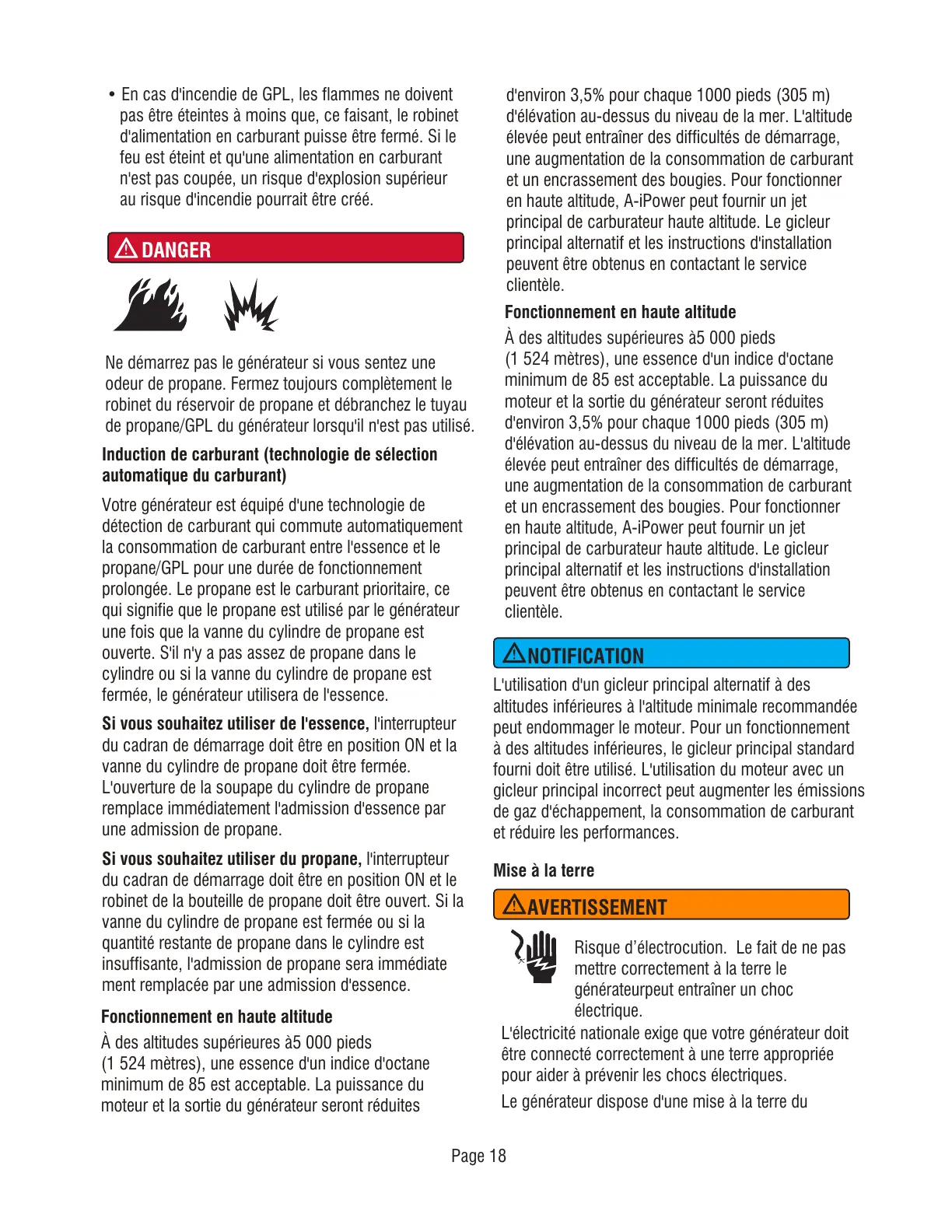prolongée. Le propane est le carburant prioritaire, ce