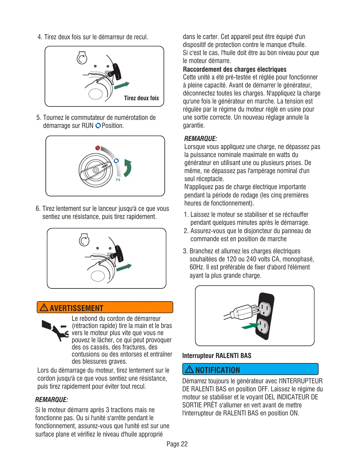 Démarrez toujours le générateur avec l'INTERRUPTEUR