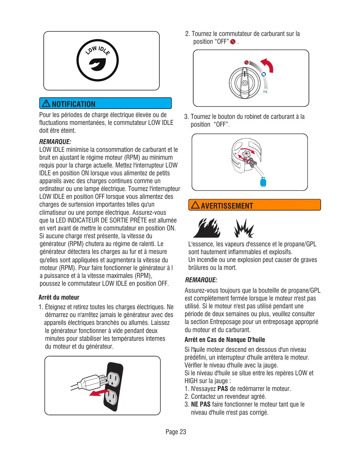 moteur (RPM). Pour faire fonctionner le générateur à l