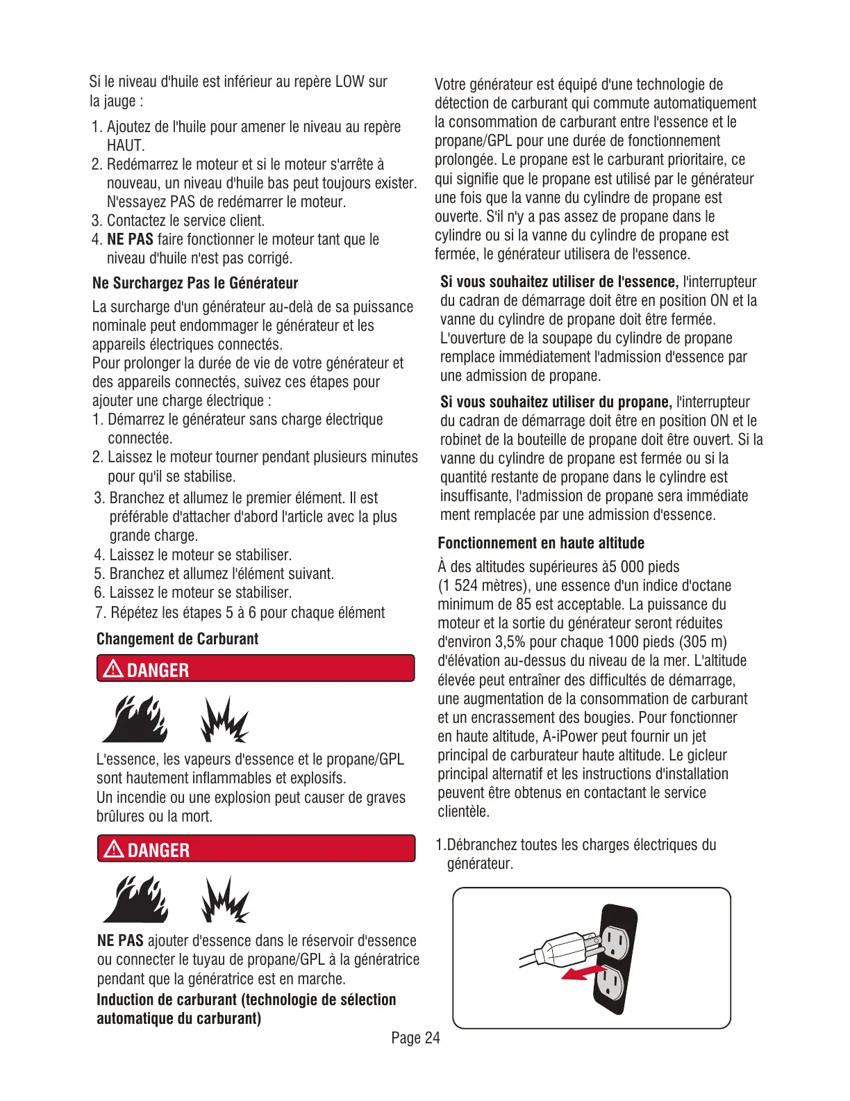 fermée, le générateur utilisera de l'essence.