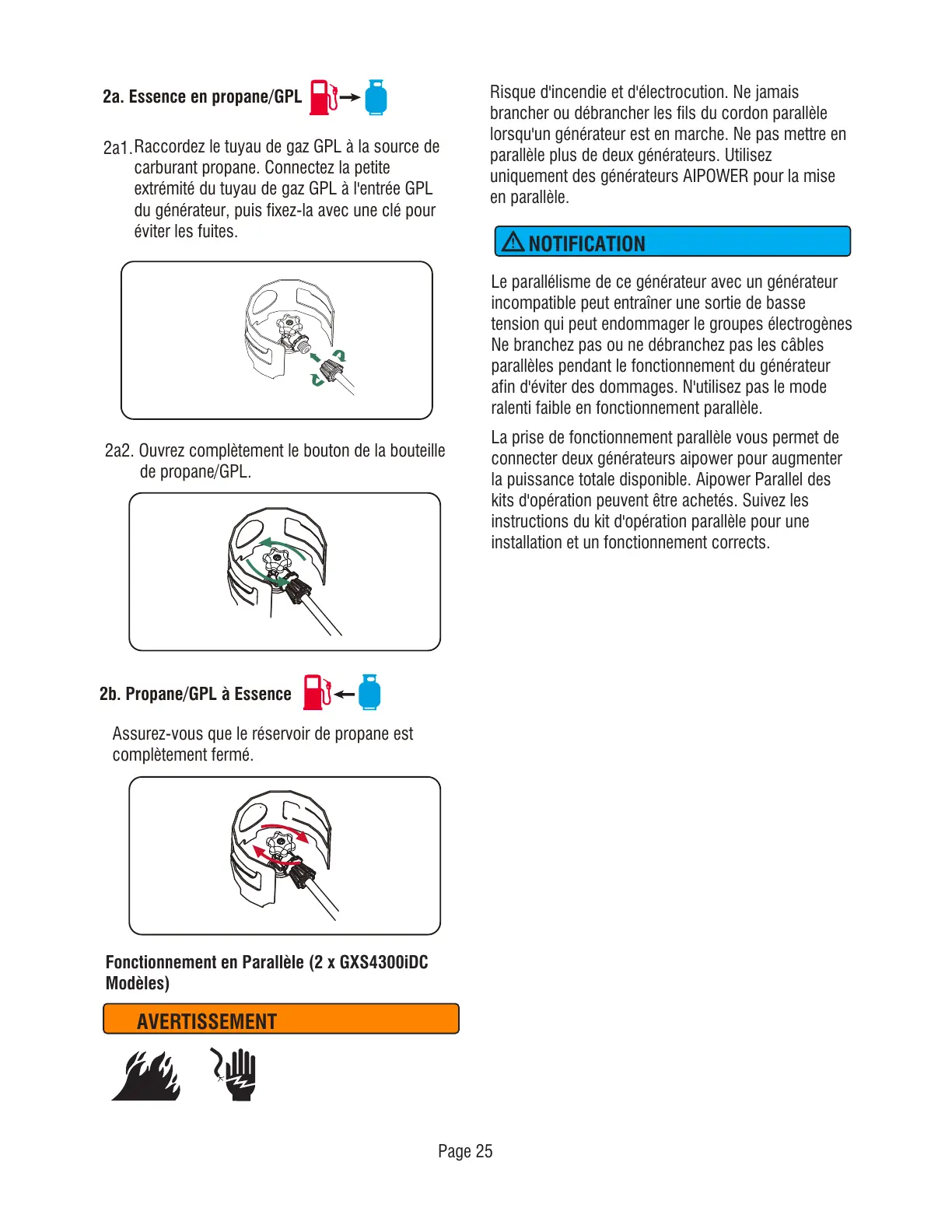lorsqu'un générateur est en marche. Ne pas mettre en
