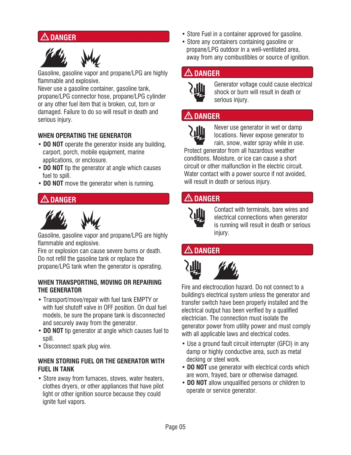 WHEN STORING FUEL OR THE GENERATOR WITH