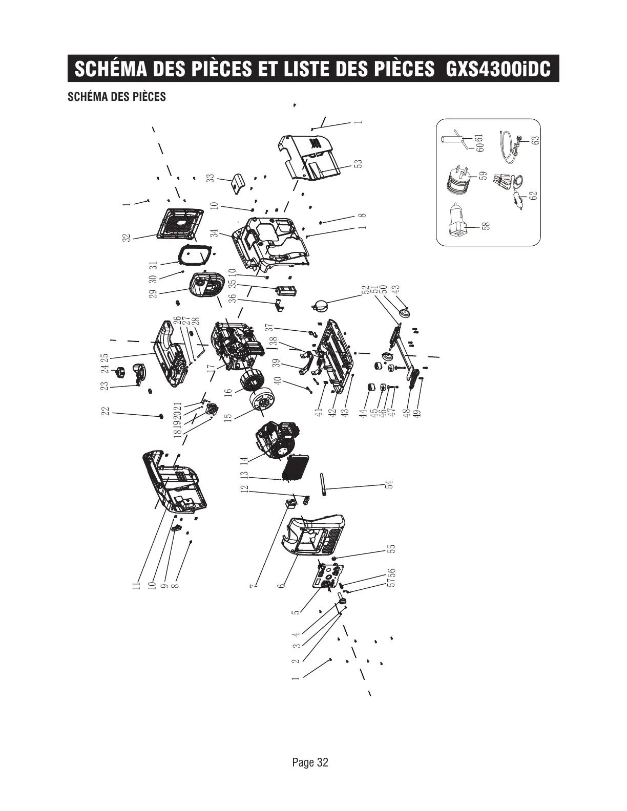 SCHÉMA DES PIÈCES ET LISTE DES PIÈCES GXS4300iDC