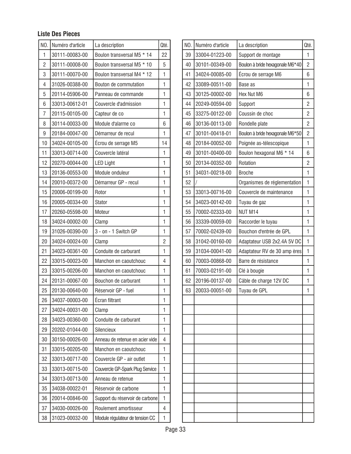 Liste Des Pieces