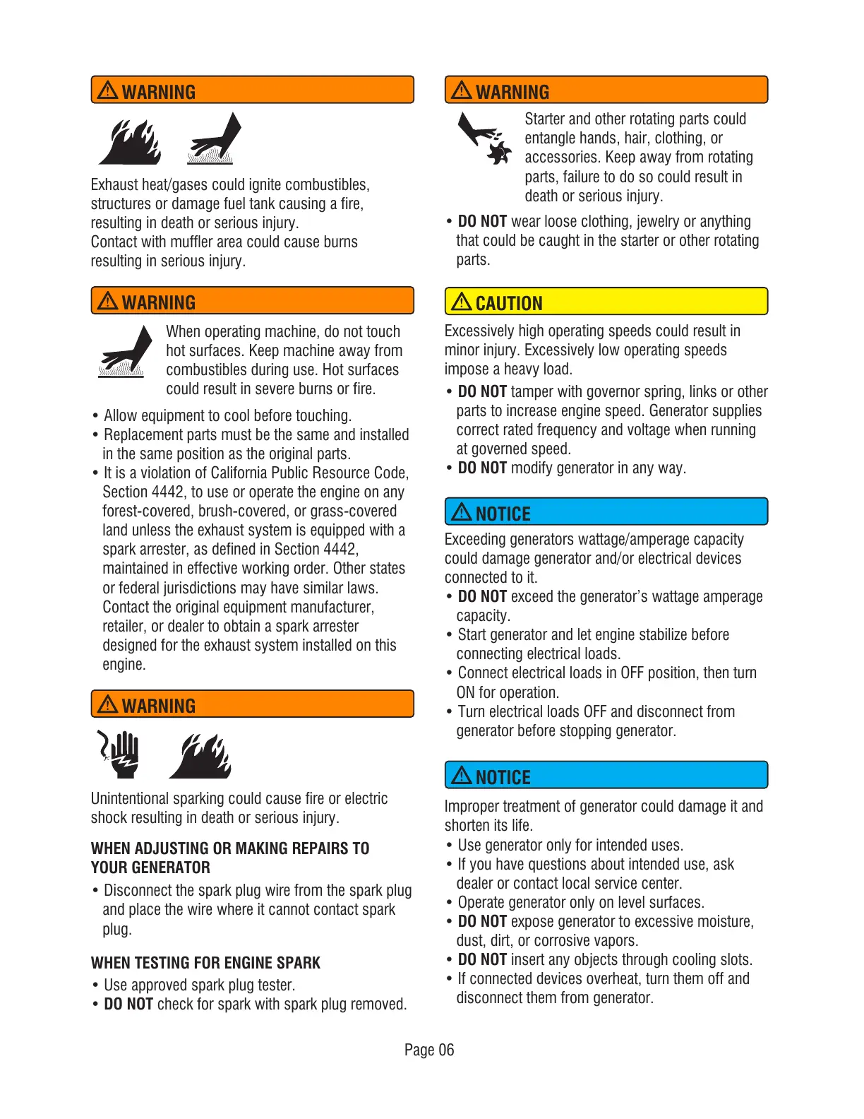 • Use generator only for intended uses.