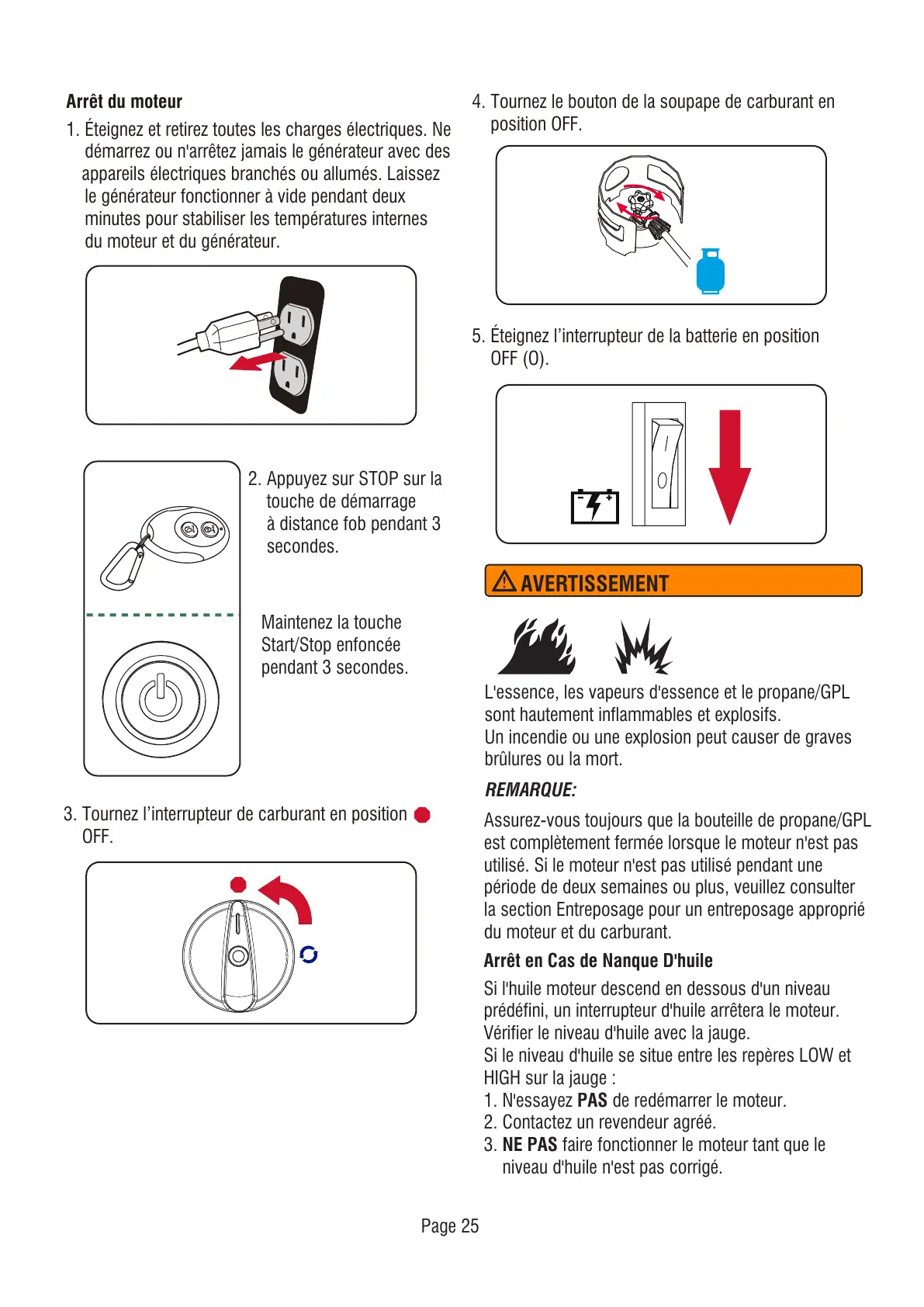 prédéfini, un interrupteur d'huile arrêtera le moteur.