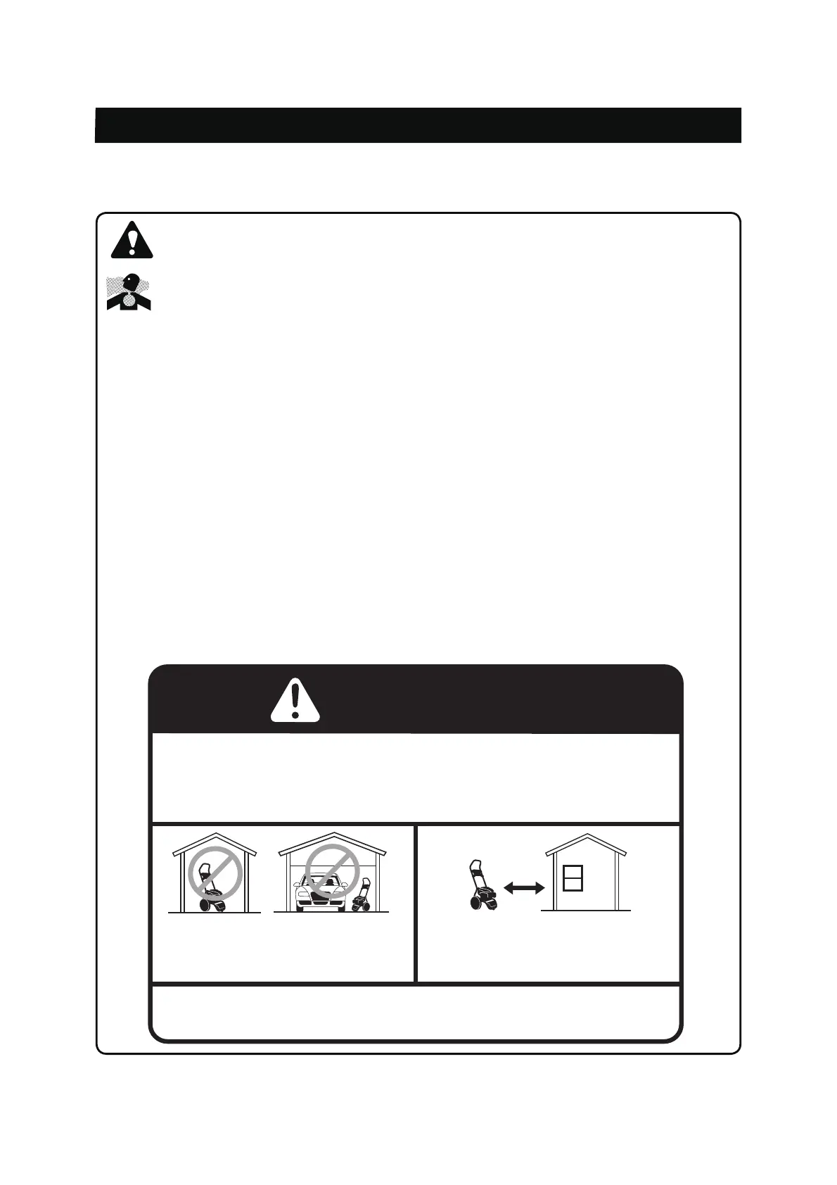 • NE PAS faire fonctionner ce produit à l'intérieur des maisons, des garages, des