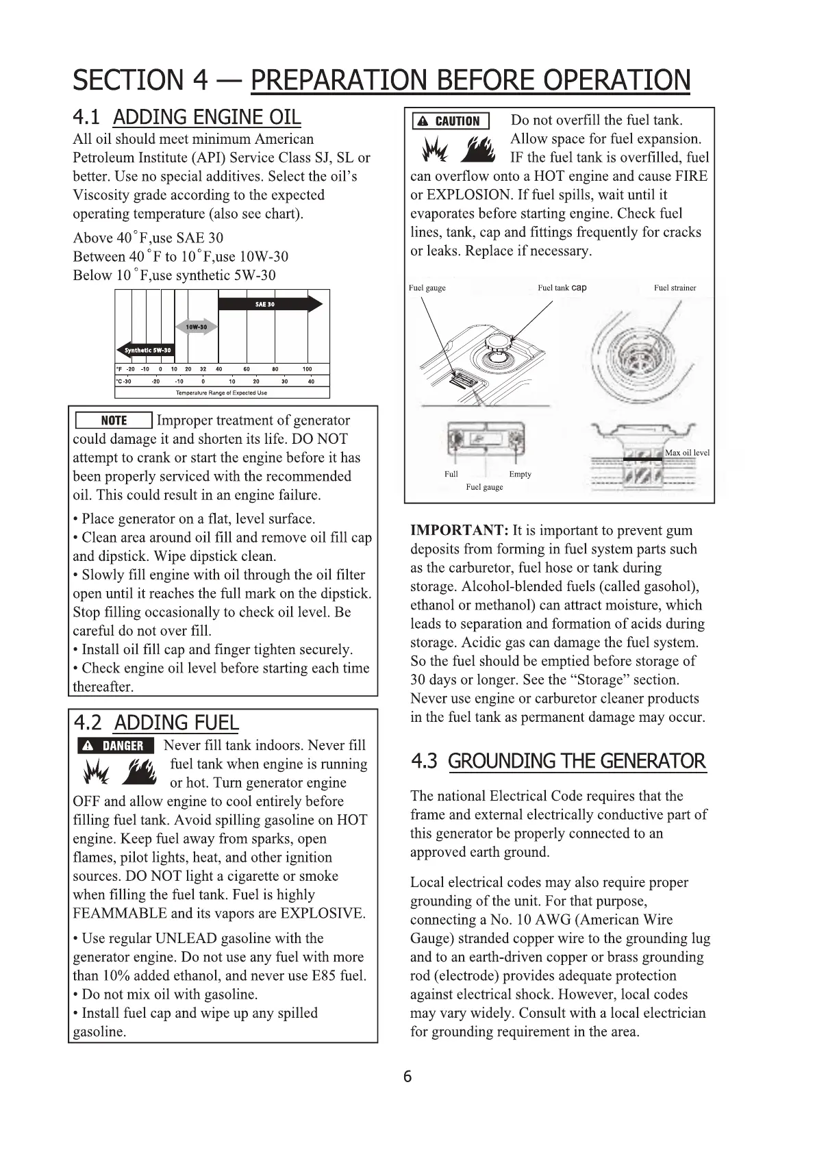 iPower SUA12000EC - PREPARATION BEFORE OPERATION; ADDING ENGINE OIL; ADDING FUEL; GROUNDING THE GENERATOR