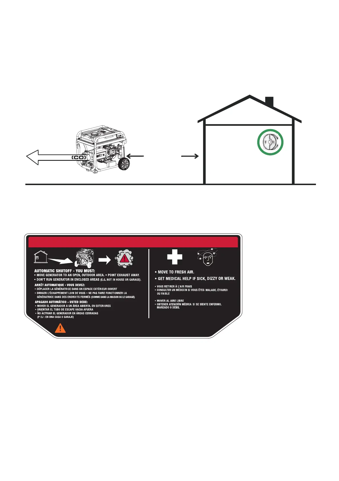 maison se déclenche pendant l'utilisation du générateur, allez immédiatement à l'air frais. Appelez les services