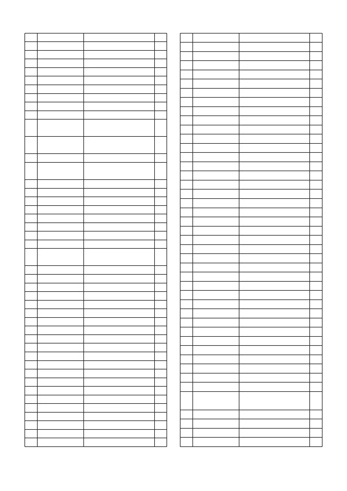 Liste des pièces