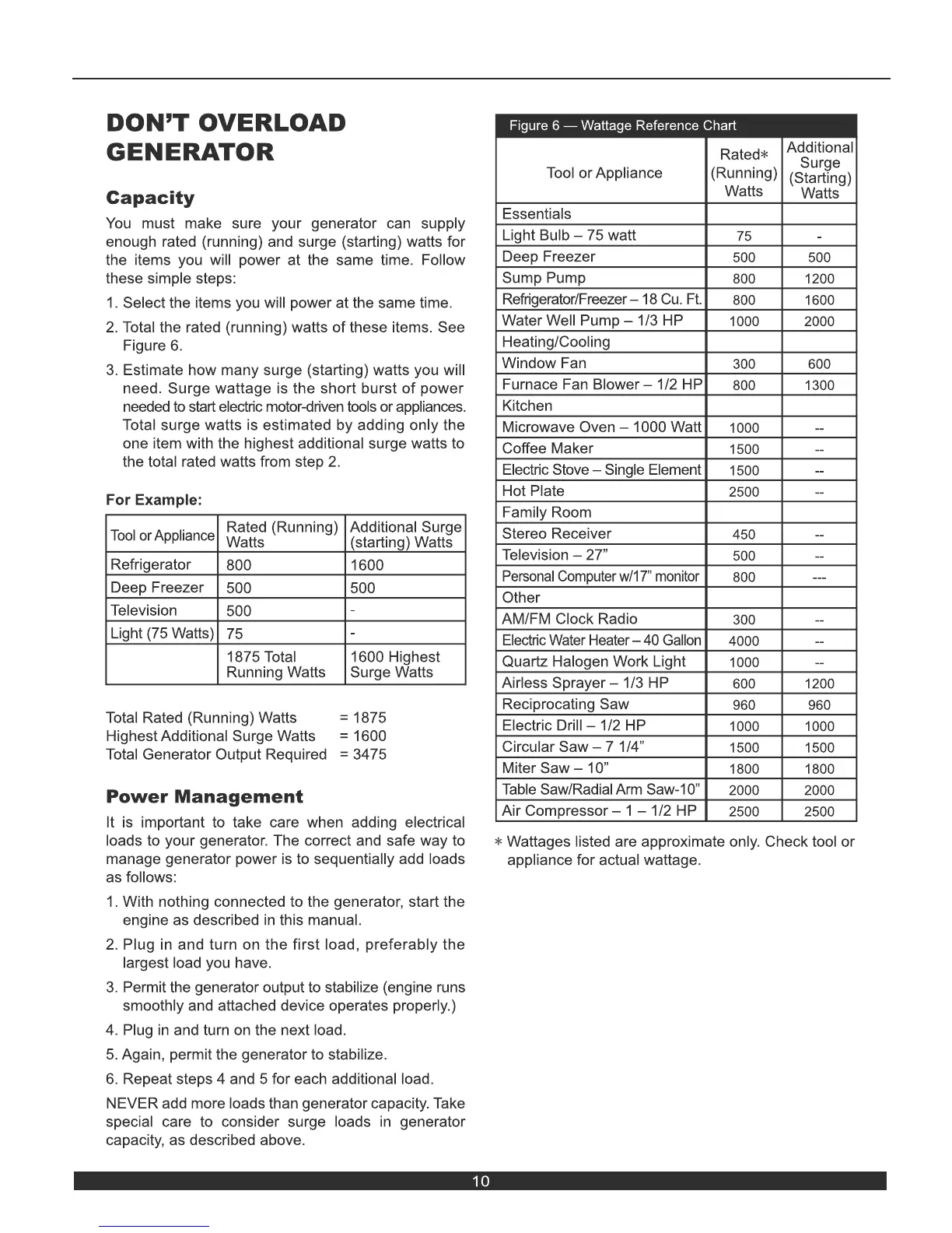 iPower SUA15000EC - Dont Overload Generator; Capacity Calculation; Power Management