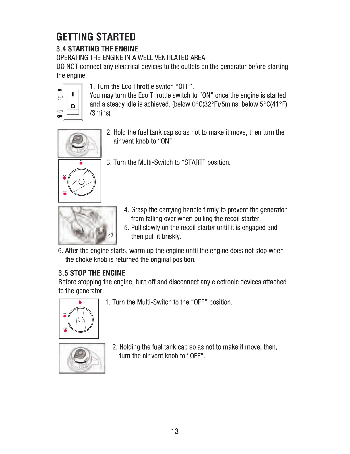 iPower SUA2000I - Starting the Engine; Stopping the Engine