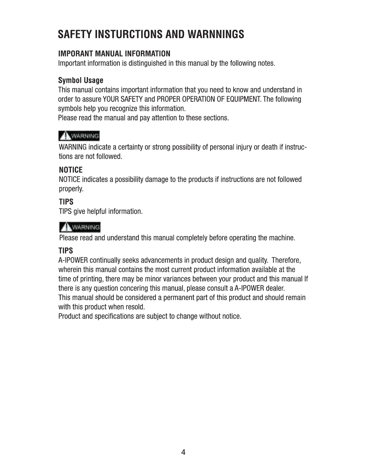 iPower SUA2000I - Safety Instructions and Warnings; Important Manual Information; Symbol Usage Explanation