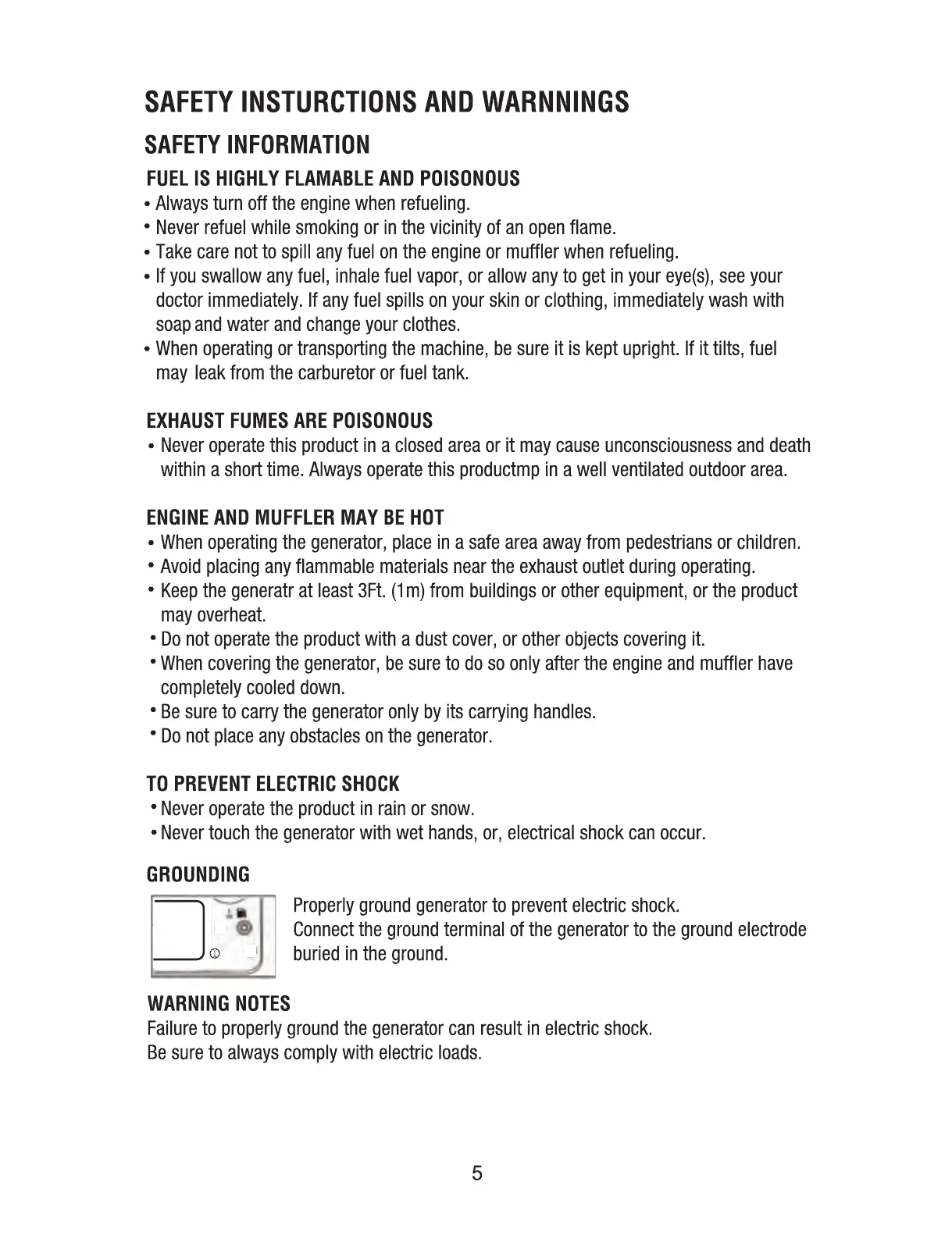 iPower SUA2000I - Fuel Safety Precautions; Exhaust Fumes Hazards; Engine and Muffler Heat Safety; Electric Shock Prevention