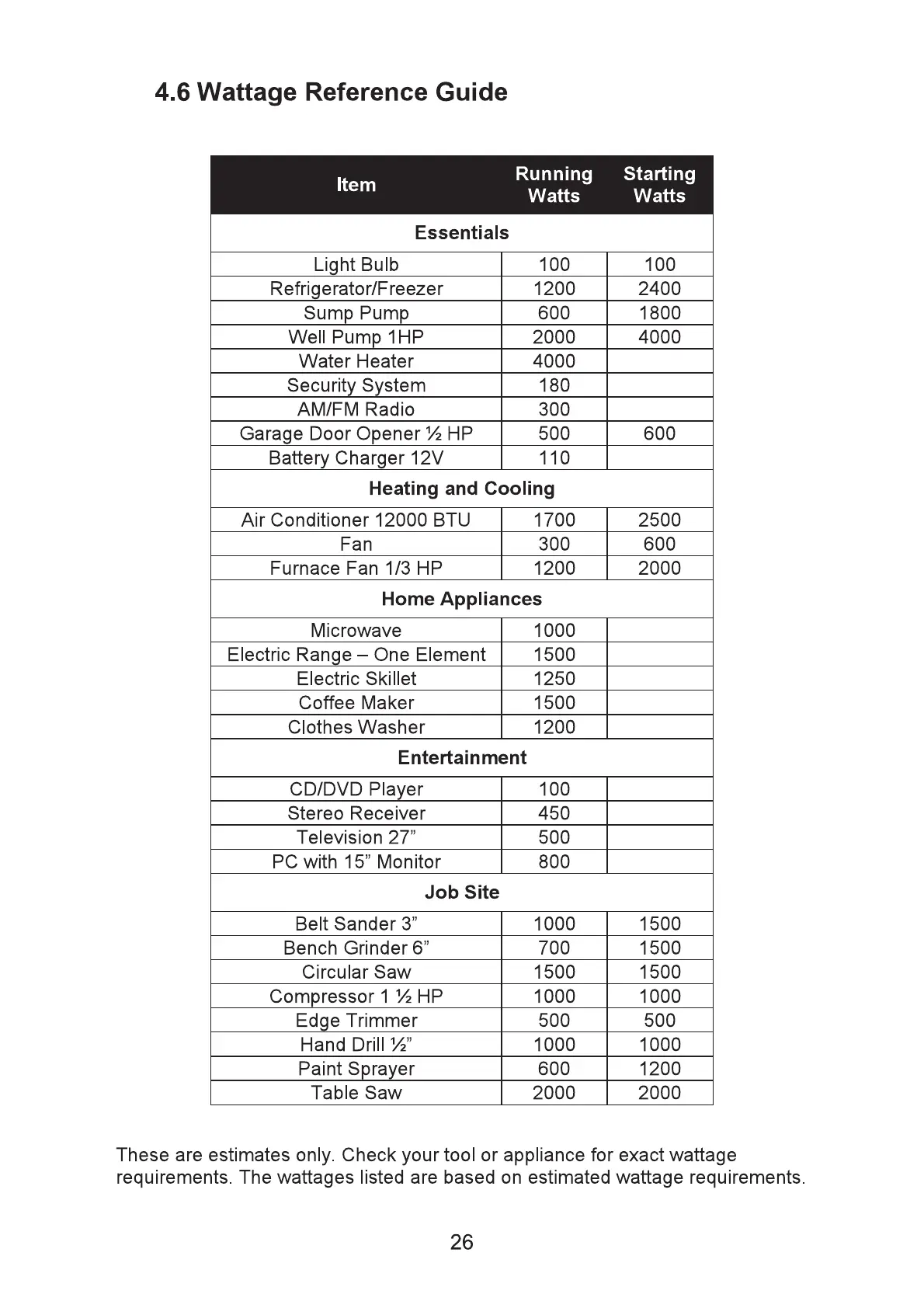 iPower SUA2000iD - 4.6 Wattage Reference Guide