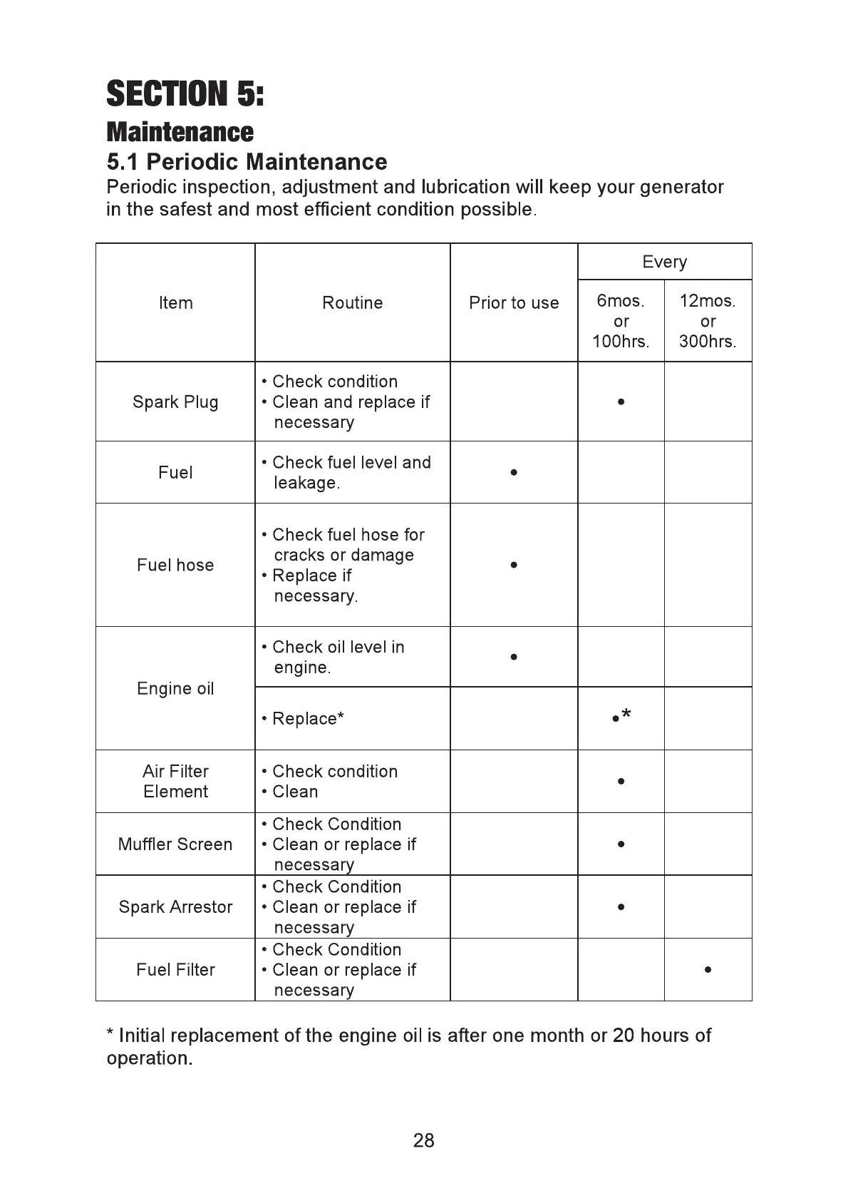 iPower SUA2000iD - SECTION 5: MAINTENANCE; 5.1 Periodic Maintenance Schedule