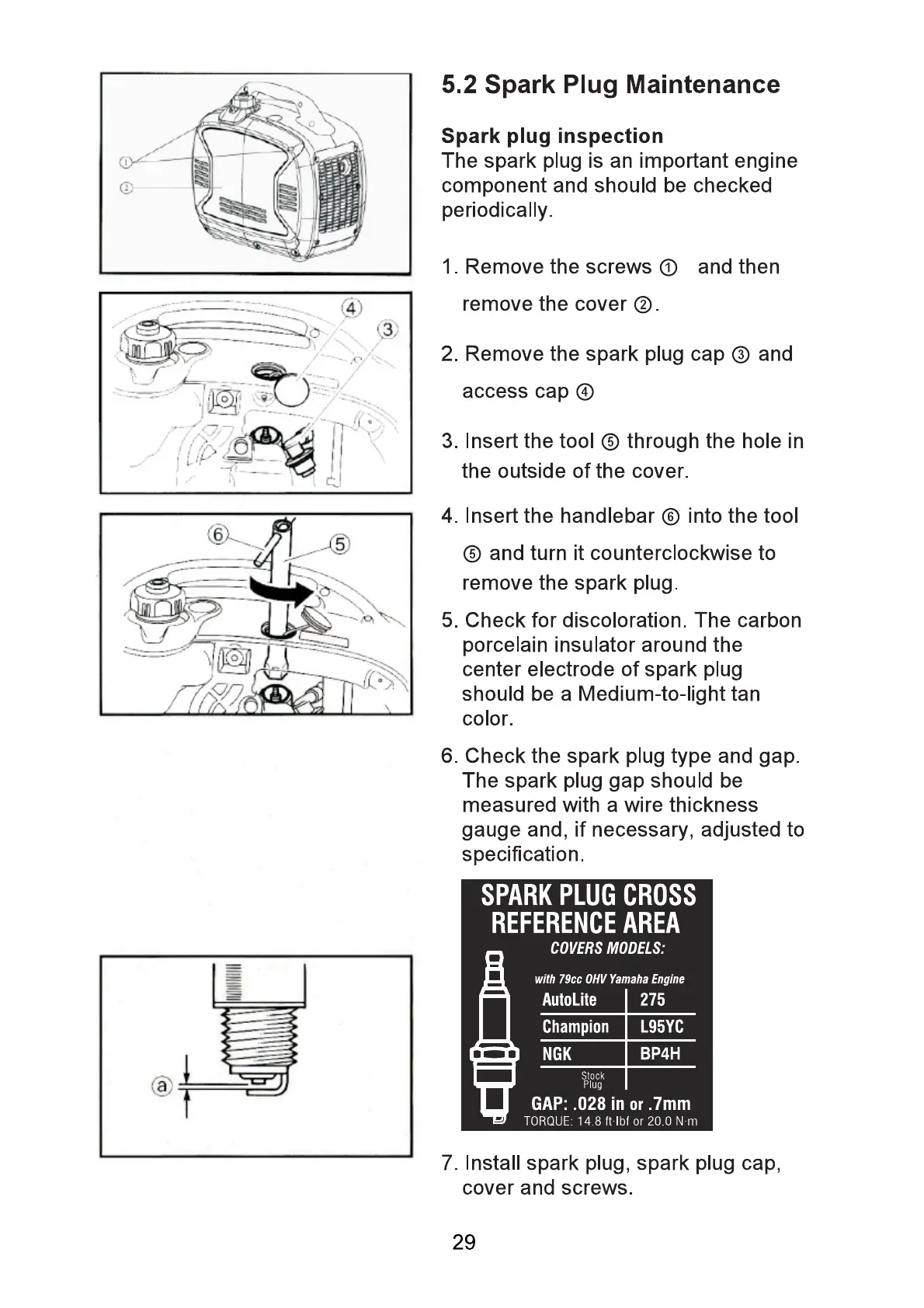 iPower SUA2000iD - 5.2 Spark Plug Maintenance