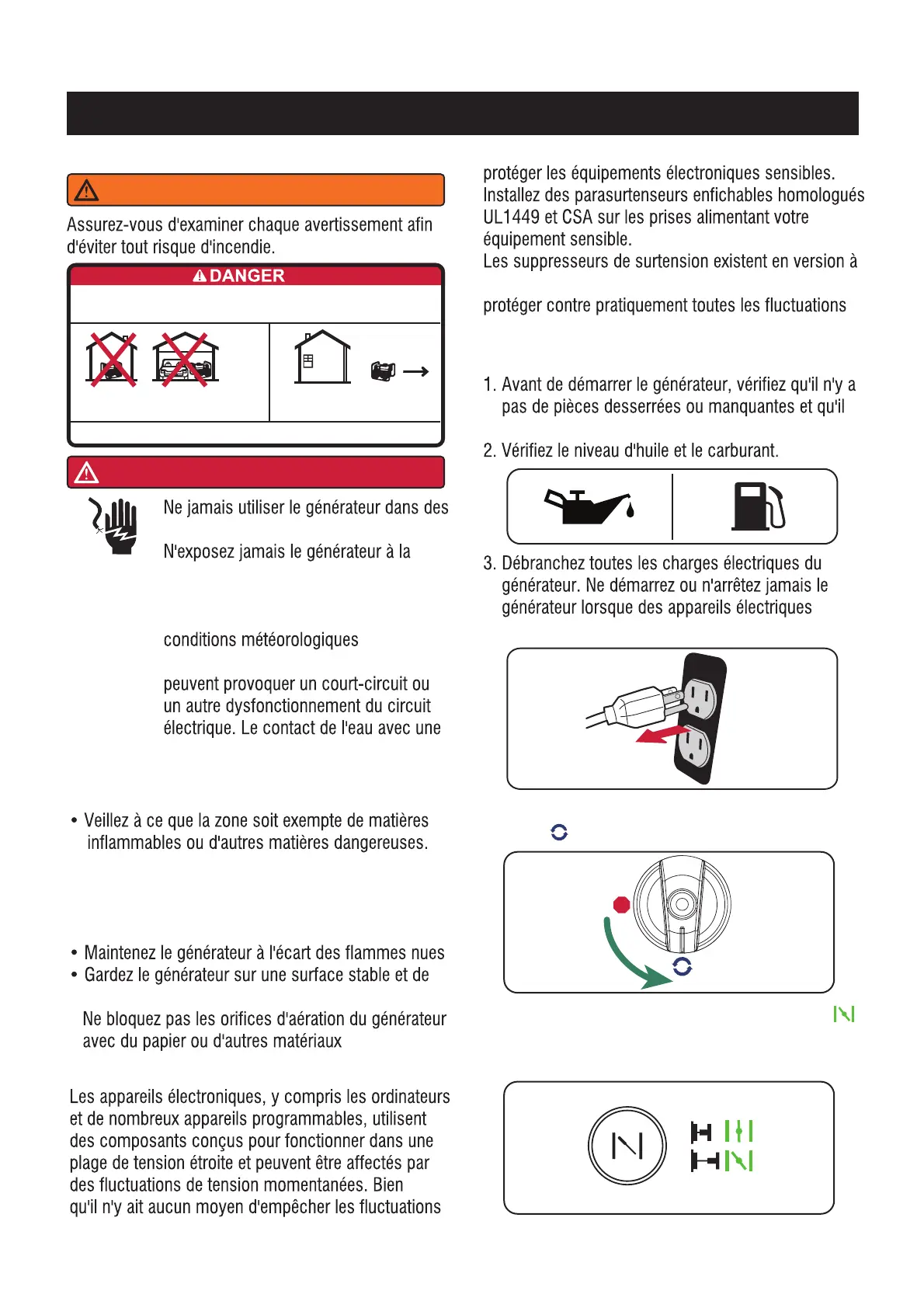 Évitez les autres risques liés au générateur. LISEZ LE MANUEL AVANT D'UTILISER