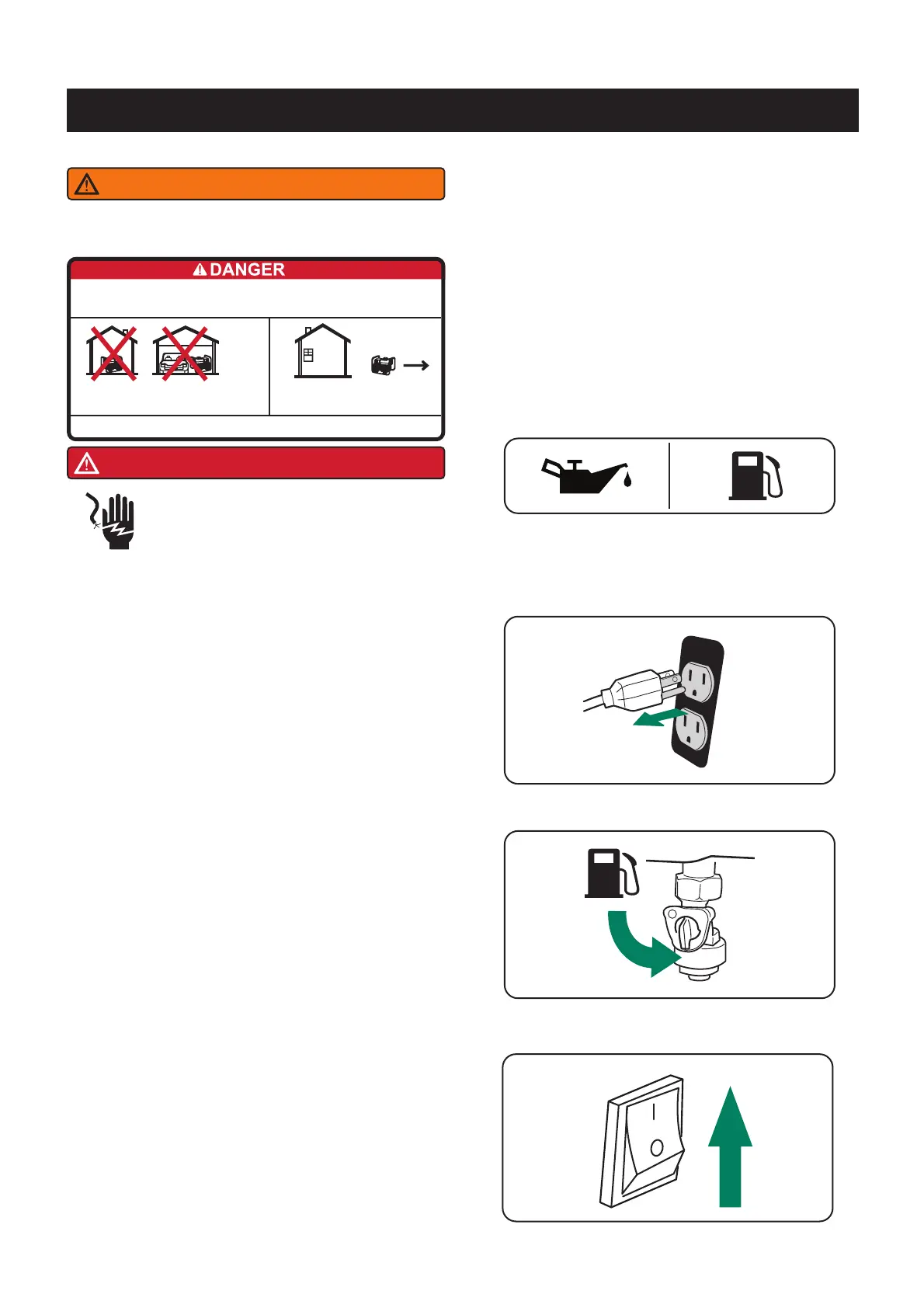 Évitez les autres risques liés au générateur. LISEZ LE MANUEL AVANT D'UTILISER