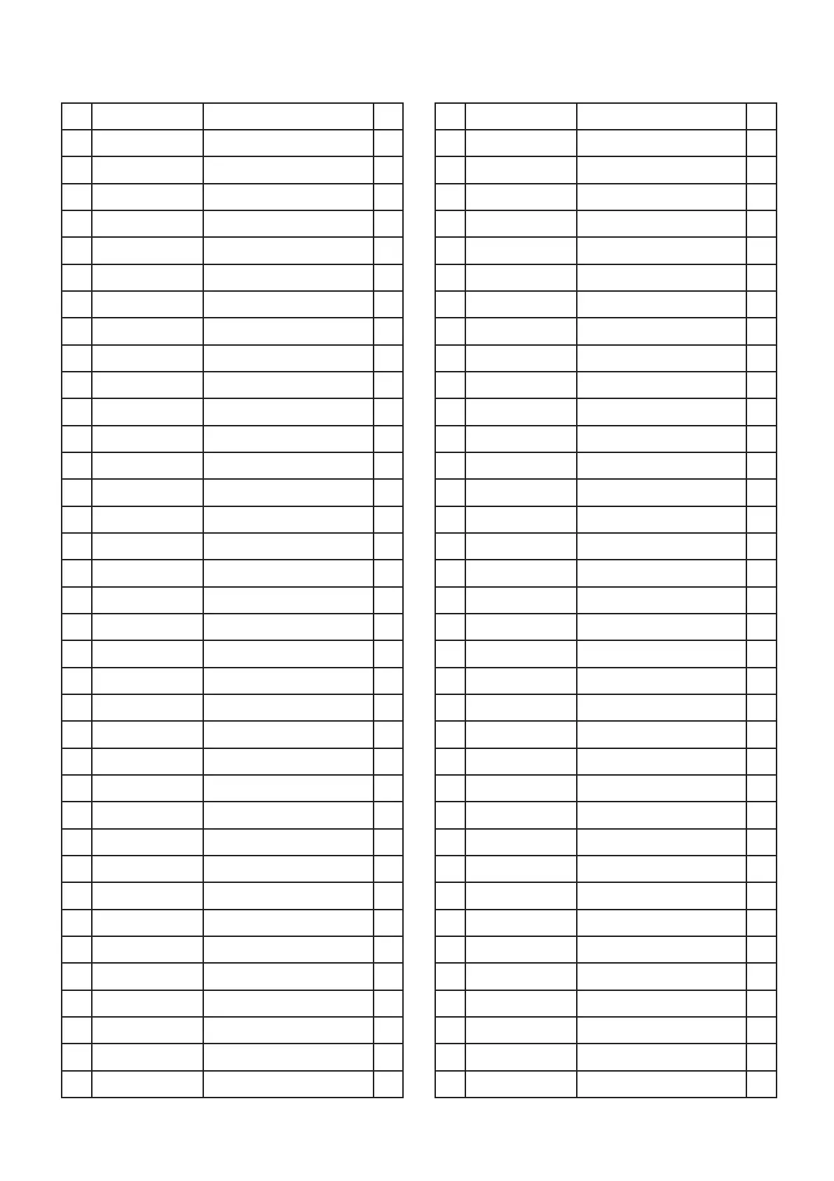 Liste des pièces