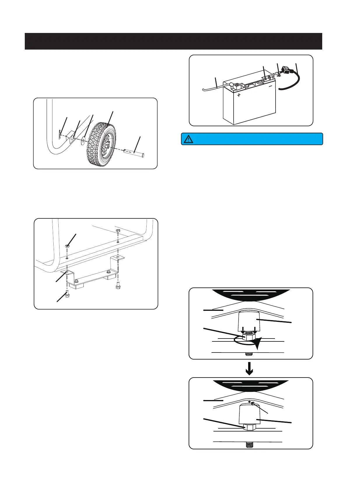 3 - Slide axle pin (A) through the wheel (B), flat