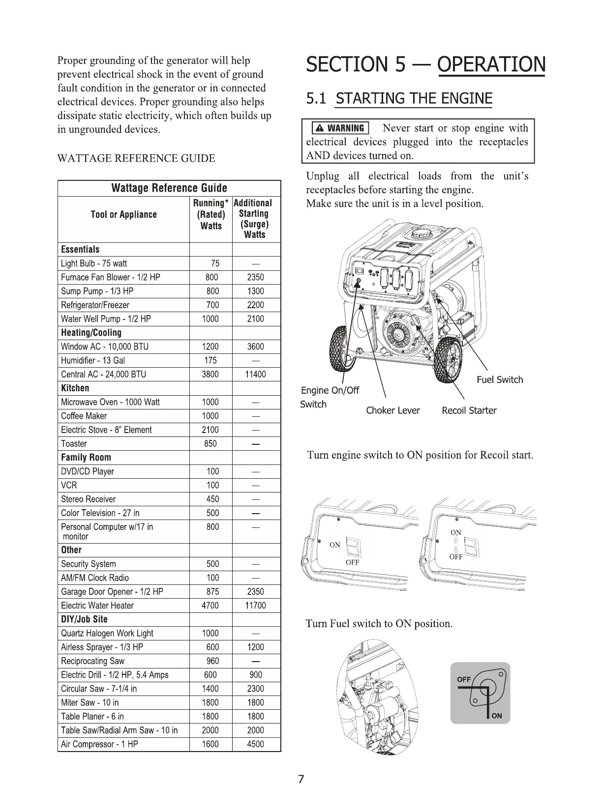 iPower SUA7000 - Operation; Starting the Engine; Connecting Electrical Loads; Stopping the Engine