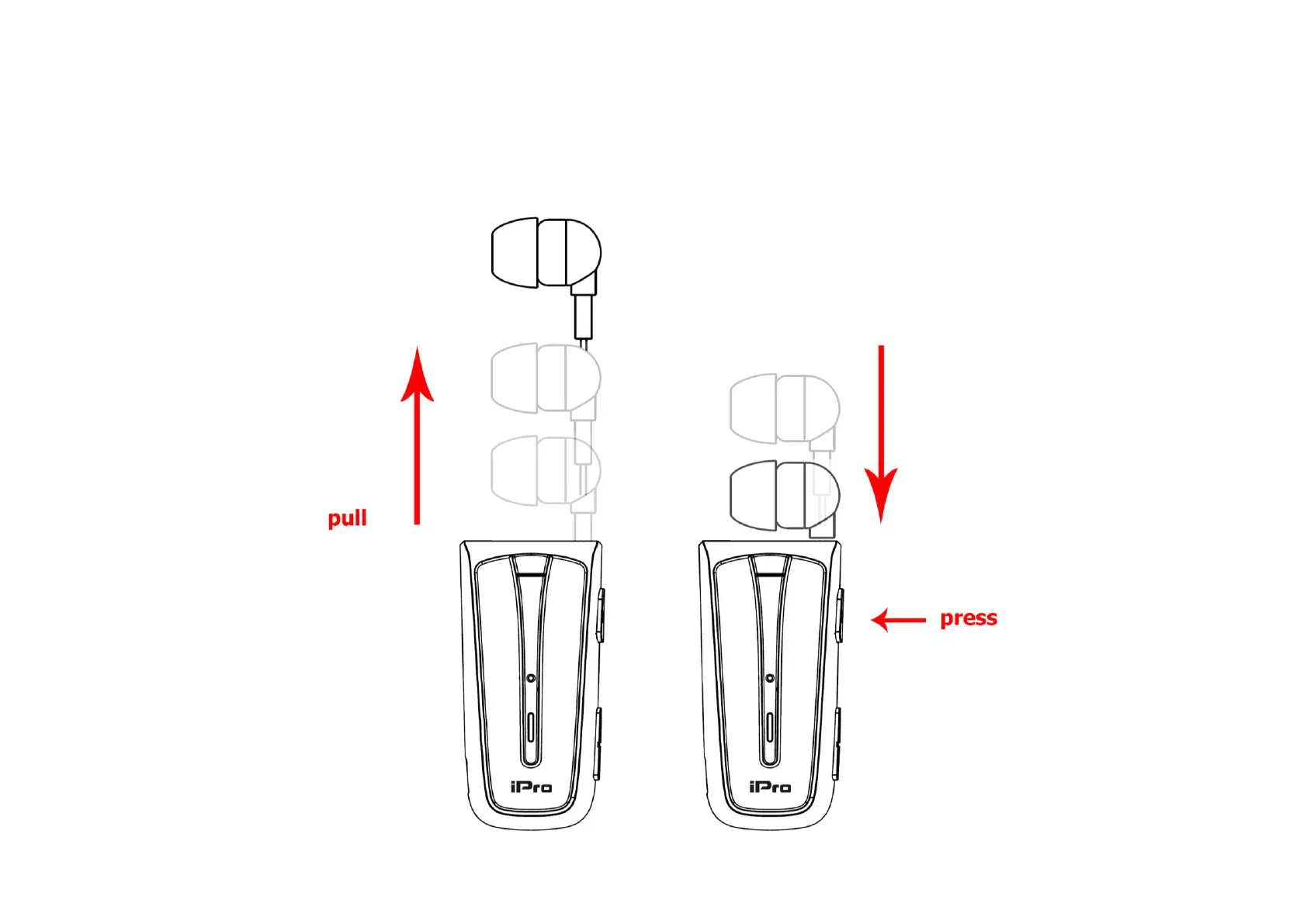 IPRO RH219s - Retractable Earphone; Cord Retraction Mechanism