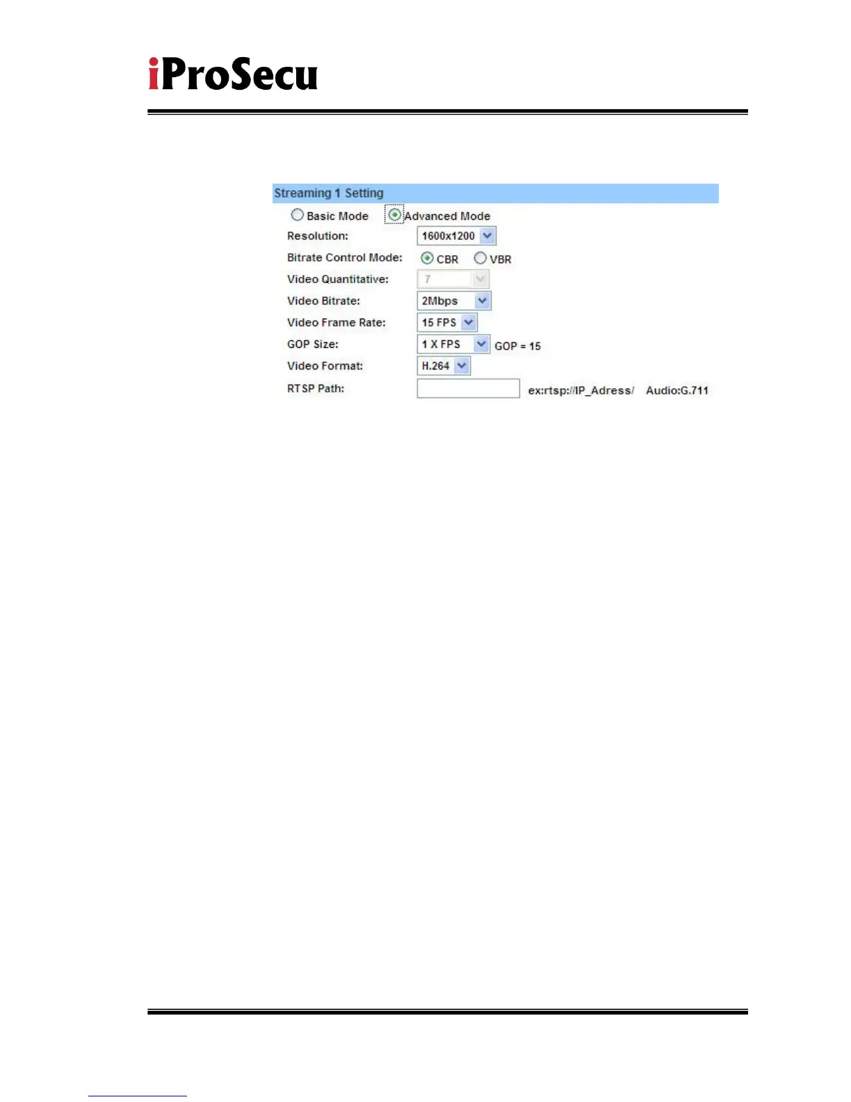 c. Streaming 1 Advanced Mode: