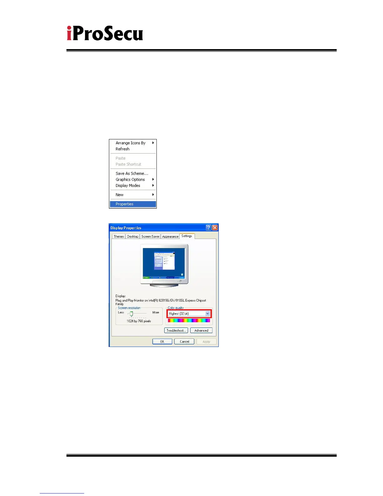 ii. Change color quality to highest (32bit).