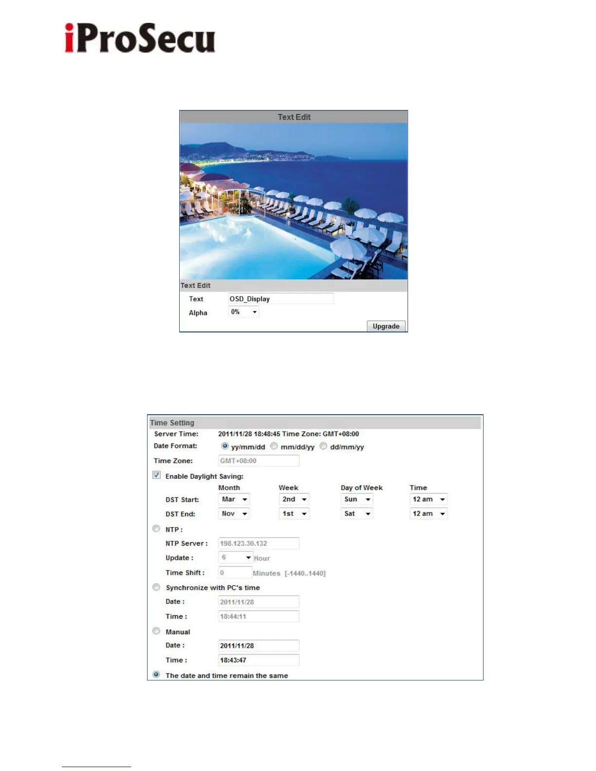 c. Server time setting: Select options to set up time - “NTP”, “Synchronize with