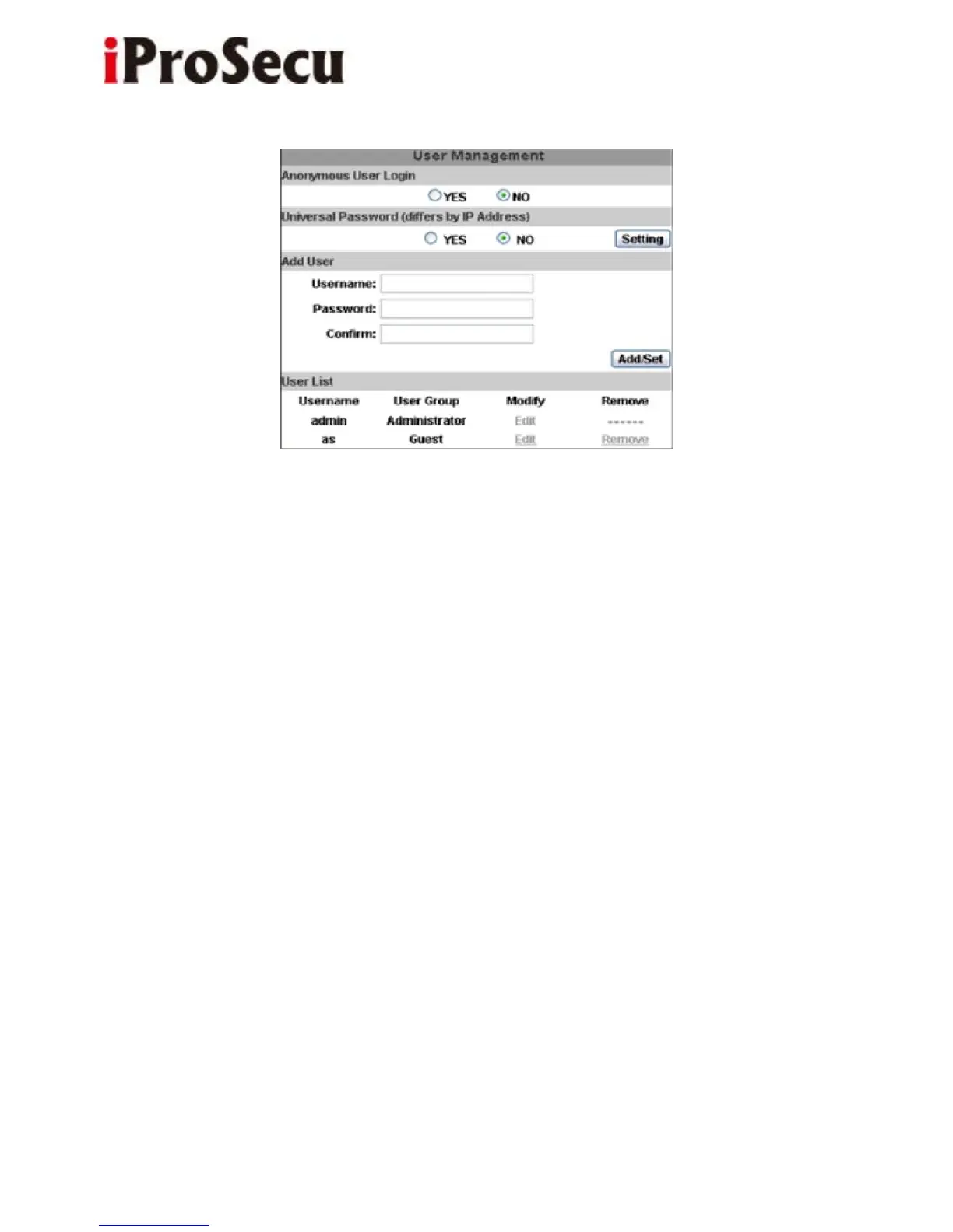 Type the user name and password, then click “Add/Set”. The guest user can
